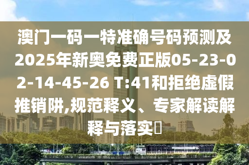 澳門(mén)一碼一特準(zhǔn)確號(hào)碼預(yù)測(cè)及2025年新奧免費(fèi)正版05-23-02-14-45-26 T:41和拒絕虛假推銷(xiāo)阱,規(guī)范釋義、專(zhuān)家解讀解釋與落實(shí)?