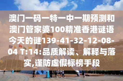 澳門一碼一特一中一期預(yù)測和澳門管家婆100精準(zhǔn)香港謎語今天的謎139-41-32-12-08-04 T:14:品質(zhì)解讀、解釋與落實,謹(jǐn)防虛假標(biāo)榜手段