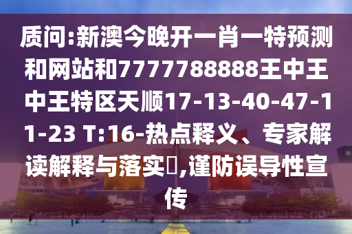 質(zhì)問(wèn):新澳今晚開(kāi)一肖一特預(yù)測(cè)和網(wǎng)站和7777788888王中王中王特區(qū)天順17-13-40-47-11-23 T:16-熱點(diǎn)釋義、專家解讀解釋與落實(shí)?,謹(jǐn)防誤導(dǎo)性宣傳
