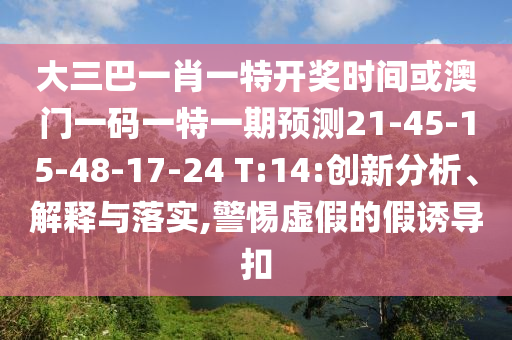 大三巴一肖一特開獎時間或澳門一碼一特一期預(yù)測21-45-15-48-17-24 T:14:創(chuàng)新分析、解釋與落實,警惕虛假的假誘導(dǎo)扣