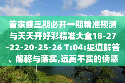 管家婆三期必開一期精準預(yù)測與天天開好彩精準大全18-27-22-20-25-26 T:04的渠道解答、解釋與落實