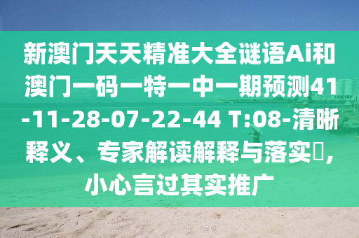 新澳門天天精準大全謎語Ai和澳門一碼一特一中一期預測41-11-28-07-22-44 T:08-清晰釋義、專家解讀解釋與落實?,小心言過其實推廣