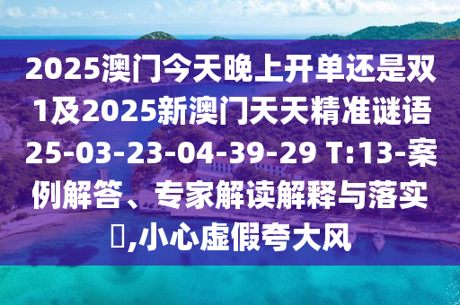 2025澳門今天晚上開單還是雙1及2025新澳門天天精準(zhǔn)謎語(yǔ)25-03-23-04-39-29 T:13-案例解答、專家解讀解釋與落實(shí)?,小心虛假夸大風(fēng)