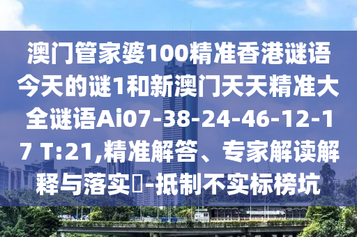 澳門管家婆100精準(zhǔn)香港謎語(yǔ)今天的謎1和新澳門天天精準(zhǔn)大全謎語(yǔ)Ai07-38-24-46-12-17 T:21,精準(zhǔn)解答、專家解讀解釋與落實(shí)?-抵制不實(shí)標(biāo)榜坑