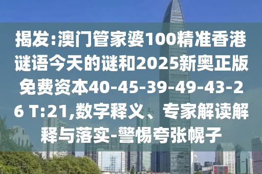 揭發(fā):澳門管家婆100精準(zhǔn)香港謎語今天的謎和2025新奧正版免費(fèi)資本40-45-39-49-43-26 T:21,數(shù)字釋義、專家解讀解釋與落實(shí)-警惕夸張幌子