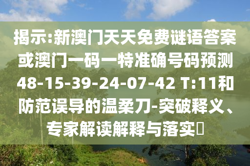 揭示:新澳門天天免費謎語答案或澳門一碼一特準確號碼預測48-15-39-24-07-42 T:11和防范誤導的溫柔刀-突破釋義、專家解讀解釋與落實?