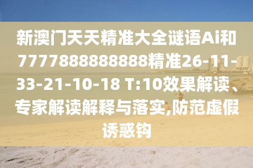 關(guān)于新澳門天天精準(zhǔn)大全謎語Ai和7777888888888精準(zhǔn)26-11-33-21-10-18 T:10等相關(guān)內(nèi)容的解讀與落實(shí)