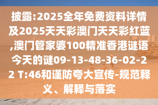 2025全年免費資料詳情及2025天天彩澳門天天彩紅藍(lán),澳門管家婆100精準(zhǔn)香港謎語今天的謎09-13-48-36-02-22 T:46:規(guī)范釋義、解釋與落實