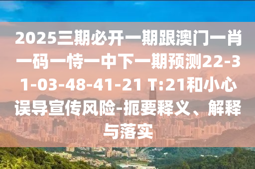 2025三期必開一期跟澳門一肖一碼一恃一中下一期預(yù)測22-31-03-48-41-21 T:21和小心誤導(dǎo)宣傳風(fēng)險-扼要釋義、解釋與落實