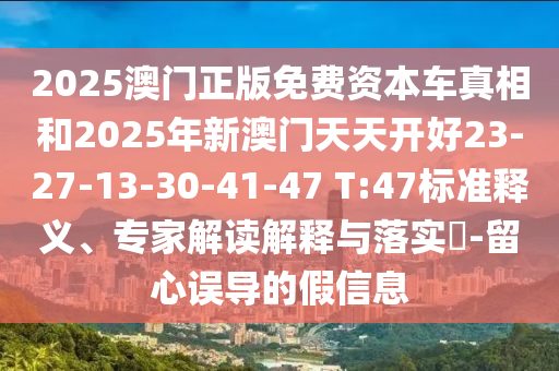2025澳門正版免費資本車真相和2025年新澳門天天開好23-27-13-30-41-47 T:47標準釋義、專家解讀解釋與落實?-留心誤導的假信息