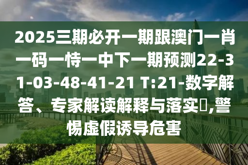 2025三期必開一期跟澳門一肖一碼一恃一中下一期預(yù)測22-31-03-48-41-21 T:21-數(shù)字解答、專家解讀解釋與落實(shí)?,警惕虛假誘導(dǎo)危害