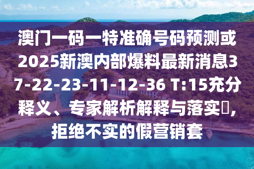 澳門(mén)一碼一特準(zhǔn)確號(hào)碼預(yù)測(cè)或2025新澳內(nèi)部爆料最新消息37-22-23-11-12-36 T:15充分釋義、專(zhuān)家解析解釋與落實(shí)?,拒絕不實(shí)的假營(yíng)銷(xiāo)套