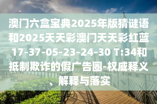 澳門六盒寶典2025年版猜謎語和2025天天彩澳門天天彩紅藍(lán)17-37-05-23-24-30 T:34和抵制欺詐的假廣告圈-權(quán)威釋義、解釋與落實(shí)