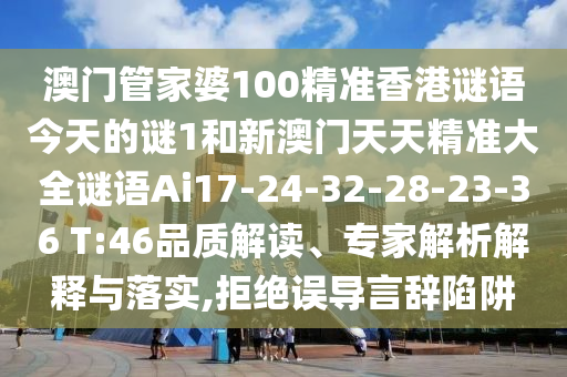 澳門管家婆100精準(zhǔn)香港謎語今天的謎1和新澳門天天精準(zhǔn)大全謎語Ai17-24-32-28-23-36 T:46品質(zhì)解讀、專家解析解釋與落實(shí),拒絕誤導(dǎo)言辭陷阱