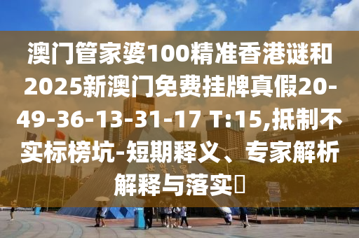澳門管家婆100精準(zhǔn)香港謎和2025新澳門免費掛牌真假20-49-36-13-31-17 T:15,抵制不實標(biāo)榜坑-短期釋義、專家解析解釋與落實?
