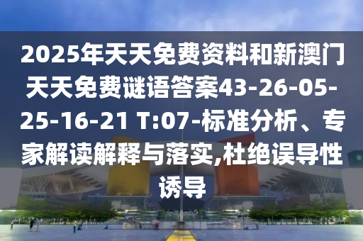 2025年天天免費(fèi)資料和新澳門天天免費(fèi)謎語(yǔ)答案43-26-05-25-16-21 T:07-標(biāo)準(zhǔn)分析、專家解讀解釋與落實(shí),杜絕誤導(dǎo)性誘導(dǎo)