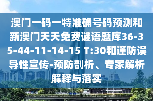 澳門一碼一特準(zhǔn)確號(hào)碼預(yù)測(cè)和新澳門天天免費(fèi)謎語(yǔ)題庫(kù)36-35-44-11-14-15 T:30和謹(jǐn)防誤導(dǎo)性宣傳-預(yù)防剖析、專家解析解釋與落實(shí)