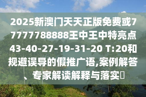 2025新澳門天天正版免費(fèi)或77777788888王中王中特亮點(diǎn)43-40-27-19-31-20 T:20和規(guī)避誤導(dǎo)的假推廣語,案例解答、專家解讀解釋與落實(shí)?
