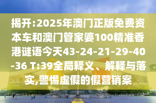 揭開:2025年澳門正版免費資本車和澳門管家婆100精準(zhǔn)香港謎語今天43-24-21-29-40-36 T:39全局釋義、解釋與落實,警惕虛假的假營銷案