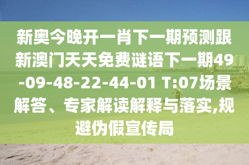新奧今晚開一肖下一期預測跟新澳門天天免費謎語下一期49-09-48-22-44-01 T:07場景解答、專家解讀解釋與落實,規(guī)避偽假宣傳局