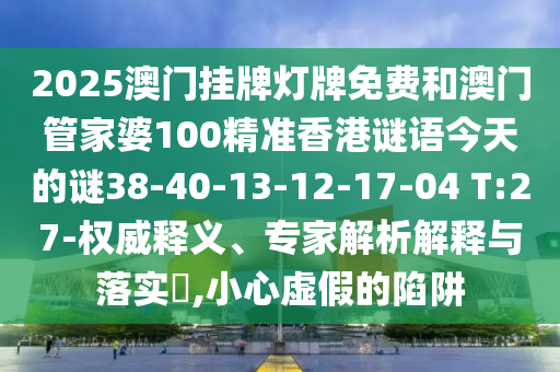 2025澳門掛牌燈牌免費和澳門管家婆100精準香港謎語今天的謎38-40-13-12-17-04 T:27-權(quán)威釋義、專家解析解釋與落實?,小心虛假的陷阱
