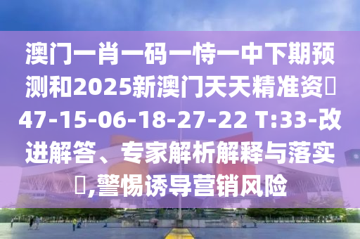 澳門一肖一碼一恃一中下期預(yù)測(cè)和2025新澳門天天精準(zhǔn)資枓47-15-06-18-27-22 T:33-改進(jìn)解答、專家解析解釋與落實(shí)?,警惕誘導(dǎo)營銷風(fēng)險(xiǎn)