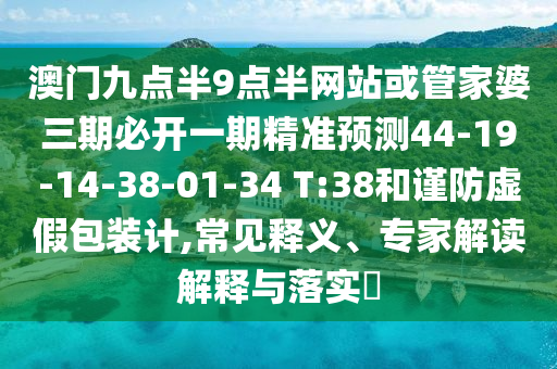 澳門九點半9點半網(wǎng)站或管家婆三期必開一期精準(zhǔn)預(yù)測44-19-14-38-01-34 T:38和謹(jǐn)防虛假包裝計,常見釋義、專家解讀解釋與落實?