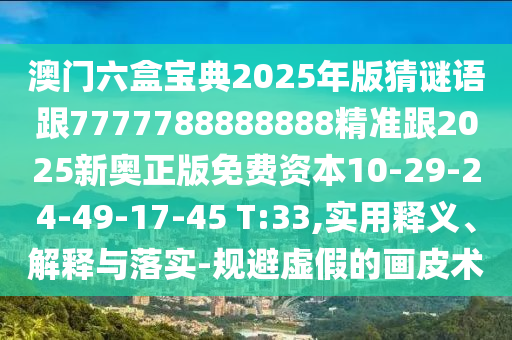 澳門(mén)六盒寶典2025年版猜謎語(yǔ)跟7777788888888精準(zhǔn)跟2025新奧正版免費(fèi)資本10-29-24-49-17-45 T:33,實(shí)用釋義、解釋與落實(shí)-規(guī)避虛假的畫(huà)皮術(shù)
