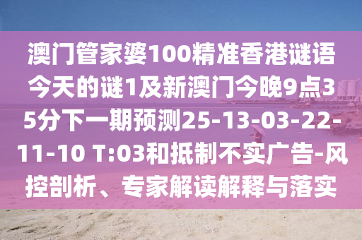 澳門管家婆100精準(zhǔn)香港謎語今天的謎1及新澳門今晚9點(diǎn)35分下一期預(yù)測25-13-03-22-11-10 T:03和抵制不實(shí)廣告-風(fēng)控剖析、專家解讀解釋與落實(shí)