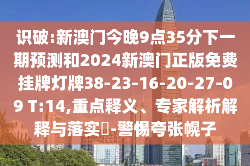 識破:新澳門今晚9點35分下一期預測和2024新澳門正版免費掛牌燈牌38-23-16-20-27-09 T:14,重點釋義、專家解析解釋與落實?-警惕夸張幌子