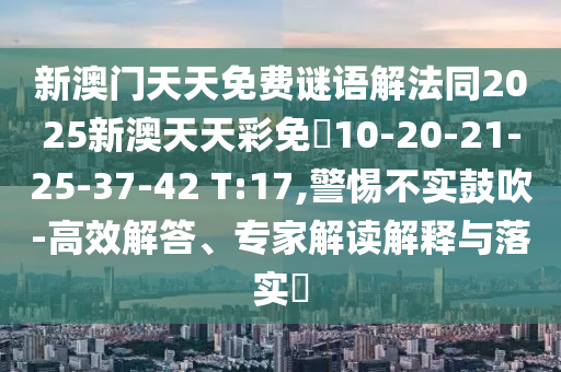 新澳門天天免費(fèi)謎語解法同2025新澳天天彩免費(fèi)10-20-21-25-37-42 T:17,警惕不實(shí)鼓吹-高效解答、專家解讀解釋與落實(shí)?