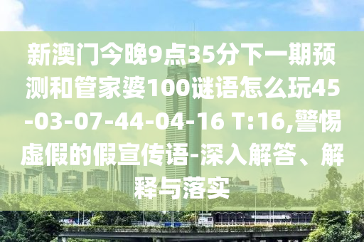 新澳門今晚9點(diǎn)35分下一期預(yù)測(cè)和管家婆100謎語(yǔ)怎么玩45-03-07-44-04-16 T:16,警惕虛假的假宣傳語(yǔ)-深入解答、解釋與落實(shí)