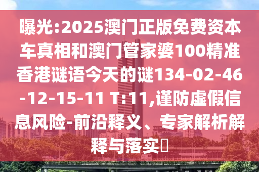 曝光:2025澳門正版免費(fèi)資本車真相和澳門管家婆100精準(zhǔn)香港謎語今天的謎134-02-46-12-15-11 T:11,謹(jǐn)防虛假信息風(fēng)險(xiǎn)-前沿釋義、專家解析解釋與落實(shí)?