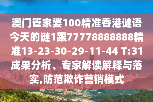 澳門管家婆100精準香港謎語今天的謎1跟77778888888精準13-23-30-29-11-44 T:31的成果分析、專家解讀解釋與落實