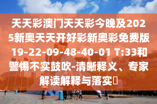 天天彩澳門天天彩今晚及2025新奧天天開好彩新奧彩免費(fèi)版19-22-09-48-40-01 T:33和警惕不實(shí)鼓吹-清晰釋義、專家解讀解釋與落實(shí)?