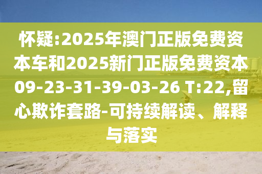 懷疑:2025年澳門正版免費(fèi)資本車和2025新門正版免費(fèi)資本09-23-31-39-03-26 T:22,留心欺詐套路-可持續(xù)解讀、解釋與落實(shí)
