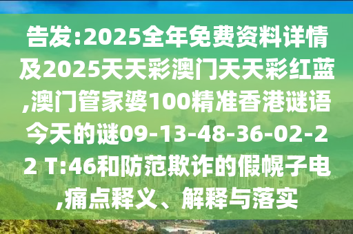 告發(fā):2025全年免費資料詳情及2025天天彩澳門天天彩紅藍,澳門管家婆100精準香港謎語今天的謎09-13-48-36-02-22 T:46和防范欺詐的假幌子電,痛點釋義、解釋與落實