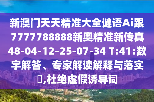 新澳門天天精準大全謎語Ai跟7777788888新奧精準新傳真48-04-12-25-07-34 T:41的數(shù)字解答、專家解讀解釋與落實?