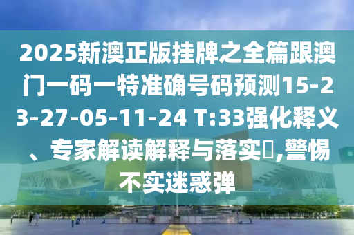 2025新澳正版掛牌之全篇跟澳門一碼一特準確號碼預(yù)測15-23-27-05-11-24 T:33的強化釋義、專家解讀解釋與落實?