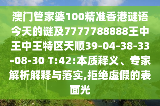 澳門管家婆100精準(zhǔn)香港謎語今天的謎及7777788888王中王中王特區(qū)天順39-04-38-33-08-30 T:42:本質(zhì)釋義、專家解析解釋與落實(shí),拒絕虛假的表面光