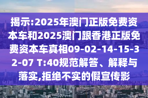 揭示:2025年澳門(mén)正版免費(fèi)資本車(chē)和2025澳門(mén)跟香港正版免費(fèi)資本車(chē)真相09-02-14-15-32-07 T:40規(guī)范解答、解釋與落實(shí),拒絕不實(shí)的假宣傳影