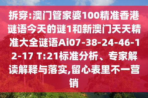 拆穿:澳門管家婆100精準(zhǔn)香港謎語(yǔ)今天的謎1和新澳門天天精準(zhǔn)大全謎語(yǔ)Ai07-38-24-46-12-17 T:21標(biāo)準(zhǔn)分析、專家解讀解釋與落實(shí),留心表里不一營(yíng)銷