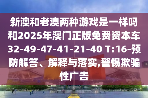 新澳和老澳兩種游戲是一樣嗎和2025年澳門正版免費資本車32-49-47-41-21-40 T:16-預(yù)防解答、解釋與落實,警惕欺騙性廣告