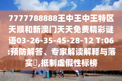 7777788888王中王中王特區(qū)天順和新澳門天天免費(fèi)精彩謎語(yǔ)03-26-35-45-28-12 T:06的預(yù)防解答、專家解讀解釋與落實(shí)?