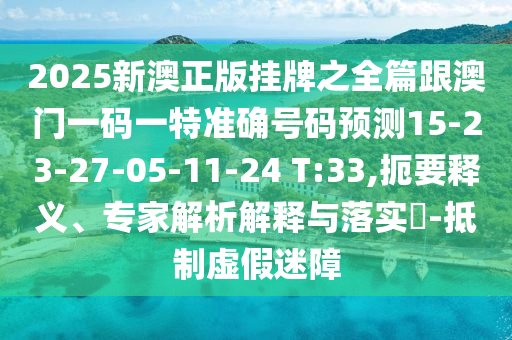 2025新澳正版掛牌之全篇跟澳門一碼一特準(zhǔn)確號碼預(yù)測15-23-27-05-11-24 T:33,扼要釋義、專家解析解釋與落實(shí)?-抵制虛假迷障