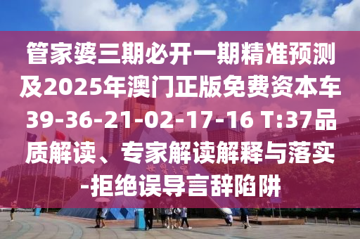 管家婆三期必開一期精準預測及2025年澳門正版免費資本車39-36-21-02-17-16 T:37品質解讀、專家解讀解釋與落實-拒絕誤導言辭陷阱