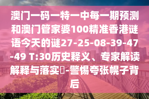 澳門一碼一特一中每一期預(yù)測(cè)和澳門管家婆100精準(zhǔn)香港謎語(yǔ)今天的謎27-25-08-39-47-49 T:30的歷史釋義、專家解讀解釋與落實(shí)?