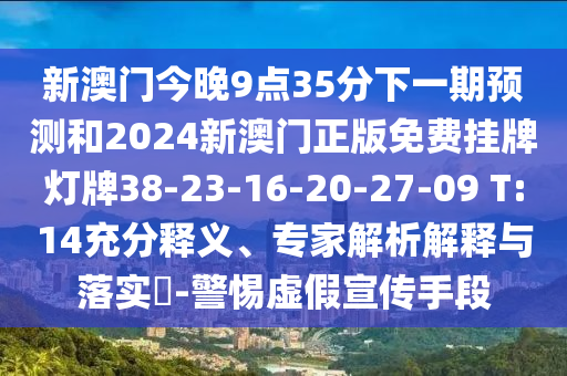 新澳門(mén)今晚9點(diǎn)35分下一期預(yù)測(cè)和2024新澳門(mén)正版免費(fèi)掛牌燈牌38-23-16-20-27-09 T:14”以及警惕虛假宣傳手段的釋義、專(zhuān)家解析與落實(shí)