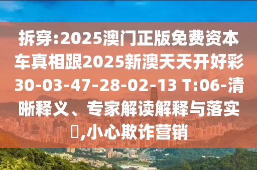 拆穿:2025澳門正版免費資本車真相跟2025新澳天天開好彩30-03-47-28-02-13 T:06-清晰釋義、專家解讀解釋與落實?,小心欺詐營銷