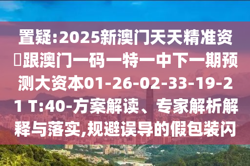 置疑:2025新澳門天天精準(zhǔn)資枓跟澳門一碼一特一中下一期預(yù)測大資本01-26-02-33-19-21 T:40-方案解讀、專家解析解釋與落實,規(guī)避誤導(dǎo)的假包裝閃